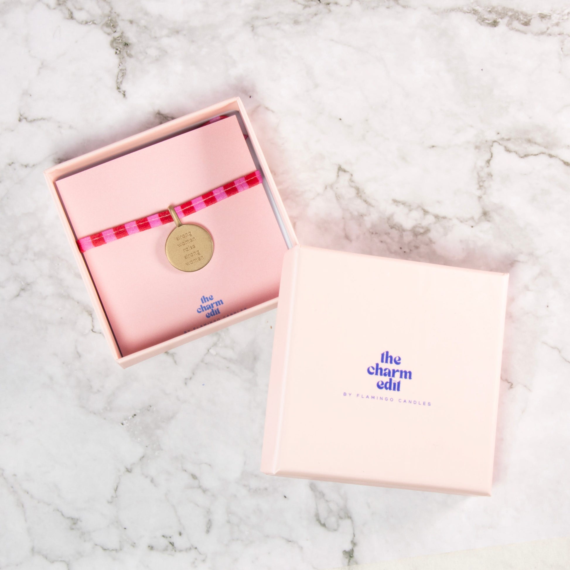 Welcome to The Charm Edit. The perfect addition to your jewellery collection. A great way to celebrate friendship, provide a daily affirmation and encourage self-love, these stainless-steel, gold-plated charms engraved with 20 different messages hang on a chic fabric adjustable tie band. Choose from 3 different band designs. Can’t decide which one you want to covet? Don’t worry, get a few - they were born to be stacked!