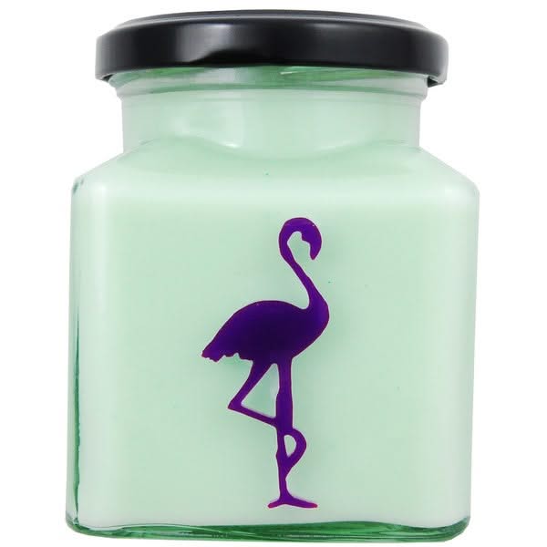 A mint green wax with purple flamingo scented with Asian Pear & Plum, a fresh and floral blend of orange and tangerine enhanced by mouthwatering fruits including apple, pear, pineapple and peach supported by a heart of freesia, rose and plum. Resting on a base of white musk, precious woods and dry fruits.
