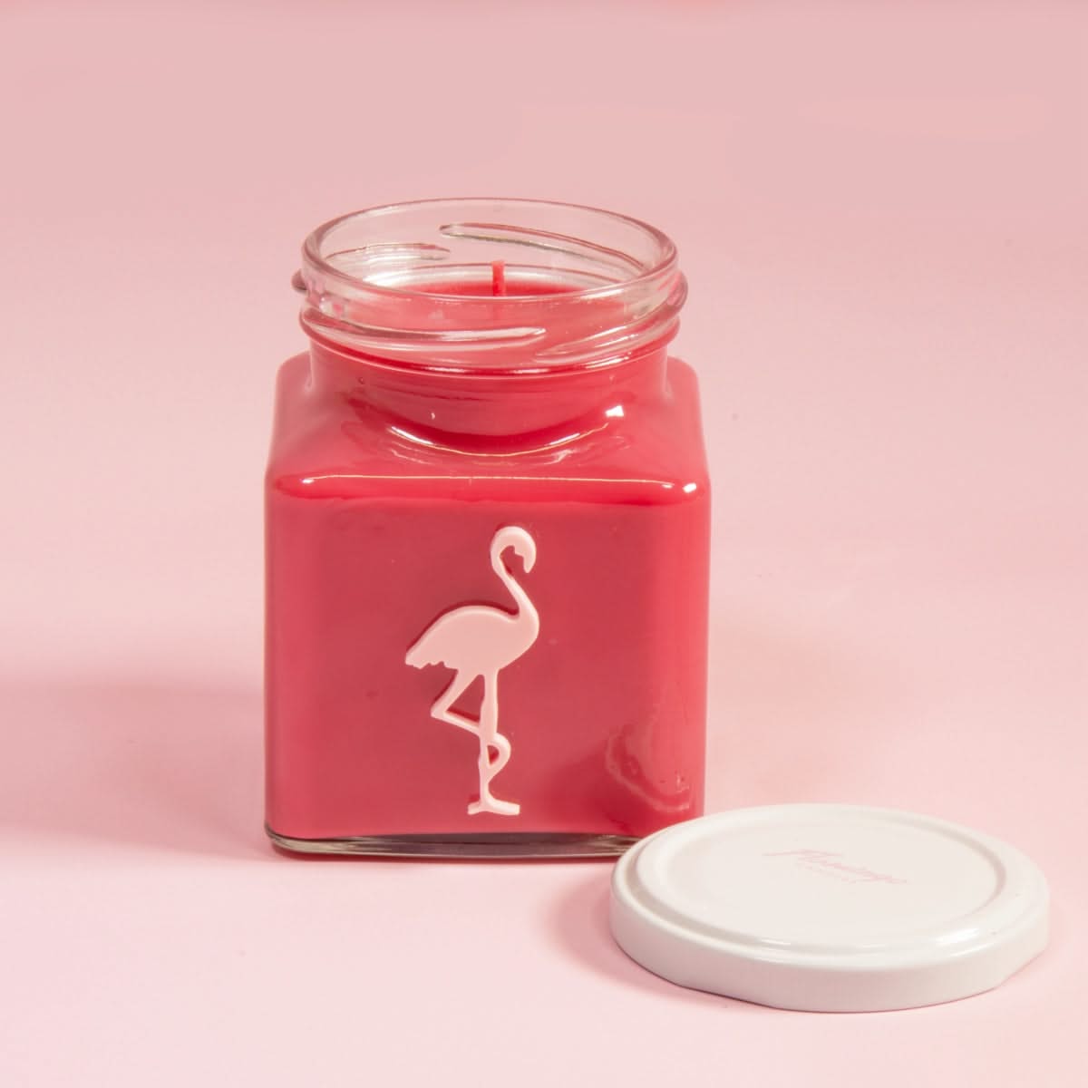 A red wax with pastel pink acrylic flamingo scented with Raspberry & Spun Sugar, a beautifully sweet and powdery fragrance with blushing ripe raspberries, blackcurrants and strawberries finished with a sprinkling of spun sugar.